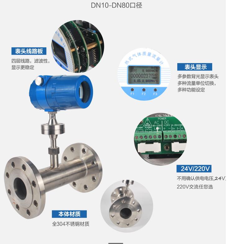 熱式氣體質(zhì)量流量計(jì)是利用熱傳導(dǎo)原理測(cè)流量的儀表。該儀表采用恒溫差法對(duì)氣體質(zhì)量流量進(jìn)行準(zhǔn)確測(cè)量。具有體積小、數(shù)字化程度高、安裝方便,測(cè)量準(zhǔn)確等優(yōu)點(diǎn)。