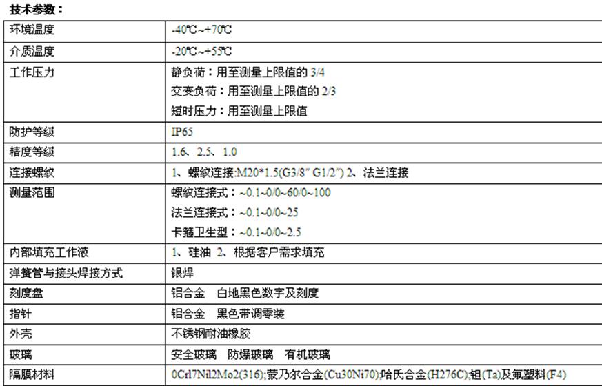 隔膜壓力表適用于測量強(qiáng)腐蝕、高溫、高粘度、易結(jié)晶、易凝固、有固體浮游物的介質(zhì)壓力以及要求避免測量介質(zhì)直接進(jìn)入通用型壓力儀表和防止沉淀物積聚且易清洗的場合。