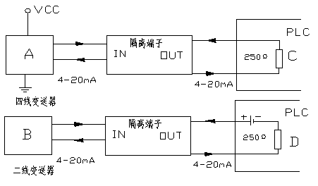 A:輸出4—20mA信號(hào)儀表(儀表有外接電源)。
