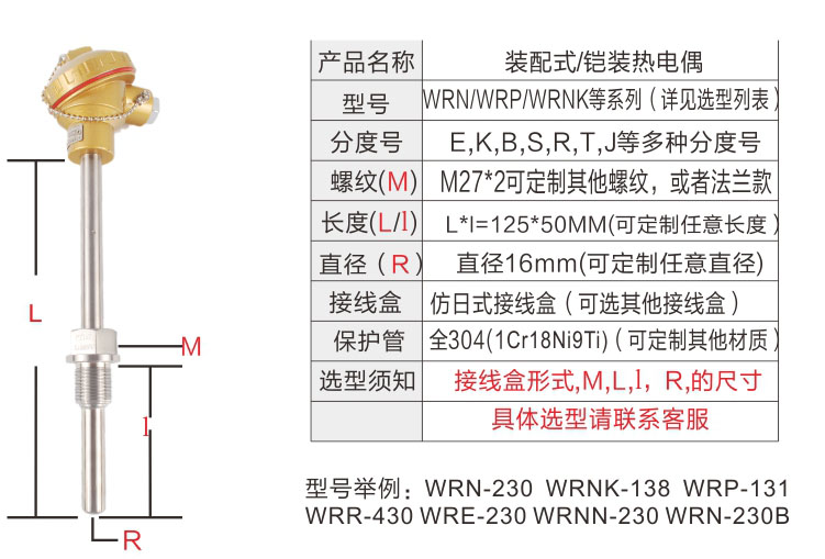 WR系列鎧裝熱電偶 專業(yè)定制 高溫測(cè)量 K,E,S,B,等多種分度號(hào)
